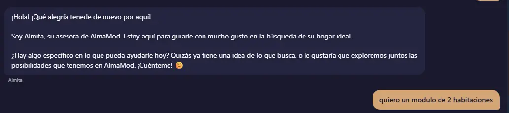 El asistente inicia la interacción con un saludo empático, detectando visitas previas para personalizar la experiencia desde el primer segundo.